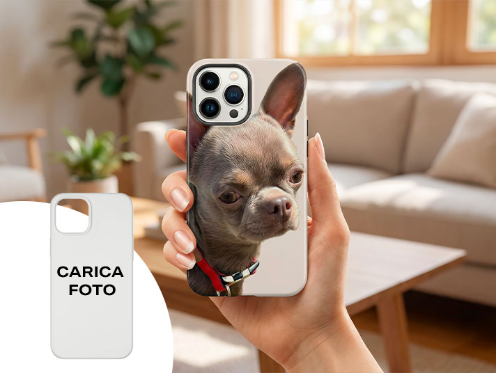 Personalizza la cover del tuo telefono con la foto del tuo amico peloso e portalo sempre con te.