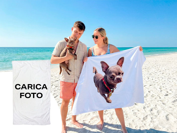 Carica l’immagine del tuo amico peloso e realizza un telo mare con stampa ad alta definizione, con colori brillanti e dettagli nitidi che valorizzano ogni espressione.