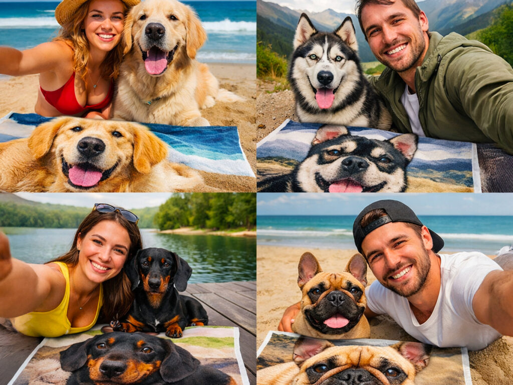 Immagina di arrivare in spiaggia e sfoggiare un telo unico, con l’immagine del tuo amico a 4 zampe stampata in grande.